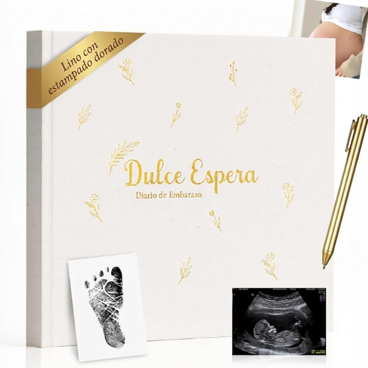 Diario de Embarazo Tapa de lino + Bóligrafo de Regalo
